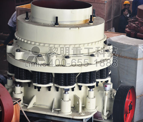 重慶破碎機(重慶碎石機)主體部分由機架、定錐總成、動錐總成、彈簧機構(gòu)、碗型軸架部和傳動組成。其輔助部分包括電氣系統(tǒng)、稀油潤滑系統(tǒng)、液壓清腔系統(tǒng)。其中,定錐總成主要有調(diào)整套、軋臼壁,動錐總成主要由主軸、動錐體、破碎壁等組成,傳動部分由大帶輪、傳動軸、小錐齒輪、大錐齒輪等組成。